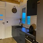 Cet établissement Slow Home Mazury comprend une kitchenette dotée d'un réfrigérateur, d'un four et de la vaisselle.